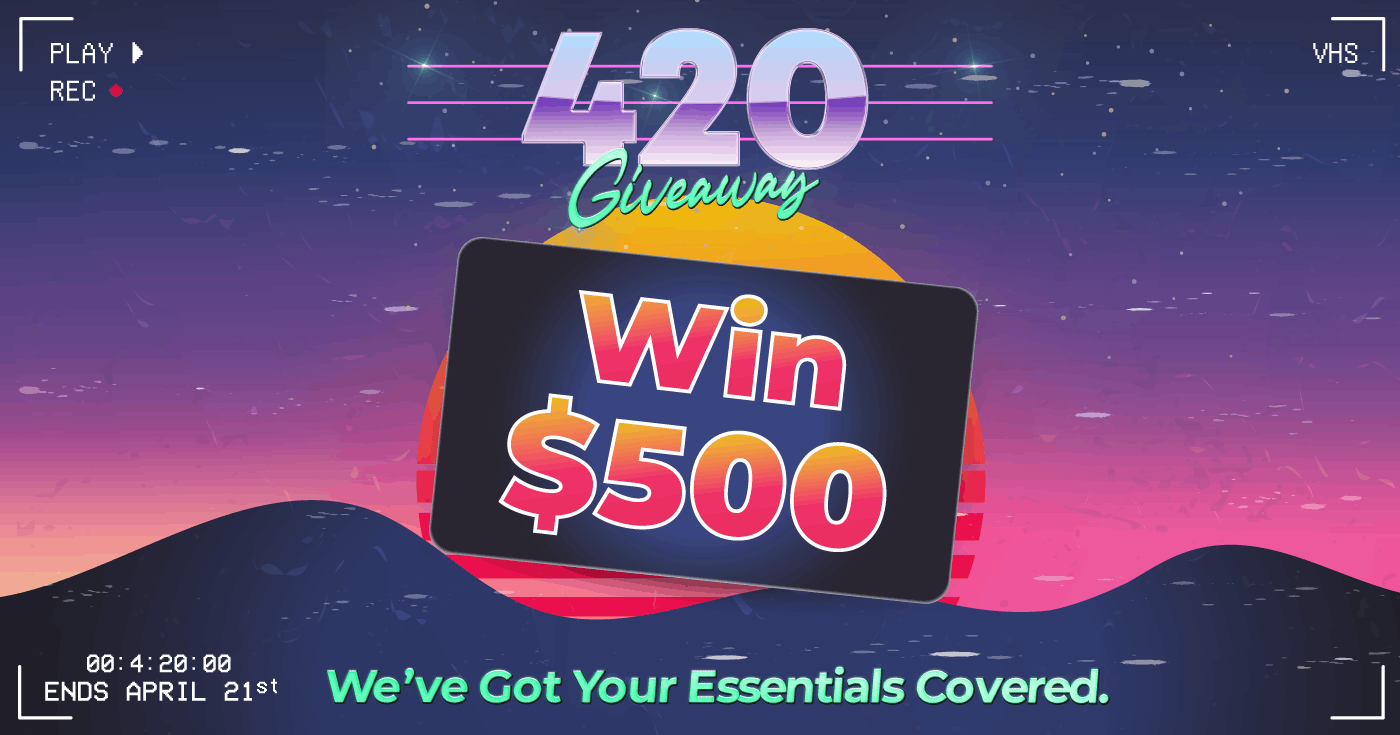 Don’t want to wait to celebrate 420 this year. We’re kicking off our 420 Essentials Giveaway and giving our rewards members a chance to win one of ten $500 gift cards you can use on everyday must-haves. Whether it’s groceries, gas, or coffee runs, we’ve got your essentials covered.